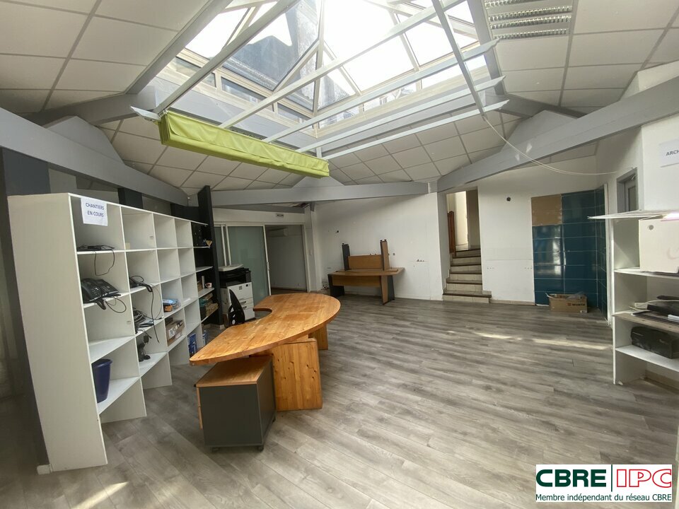 CBRE IPC vous propose à la location un local commercial de 202 m² environ, actuellement cloisonné : accueil / attente, 2 bureaux, une réserve et local archives, sanitaires. Climatisation réversible. Vitrine.